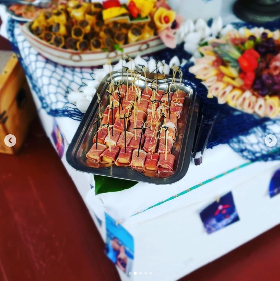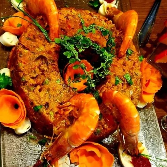 Filé de Cambucu fresco com camarões rosa, arroz de marisco e farofa de banana da terra + picanha padrão A + filé de coxas/sobrecoxas de frango com temperos do chef, proteínas muito bem acompanhadas com lindas guarnições, incluindo salada de batata e salsa com maionese Heinz e outras saladas com palmito, azeitonas gordal e azapa, frutas…